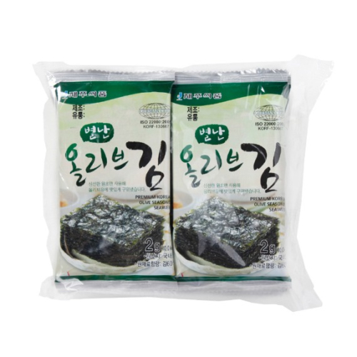 김(국내산)60%, 옥수수기름(외국산)23%, 압축올리브유(외국산)5%, 참기름5%, 들기름5%, 정제염2%
